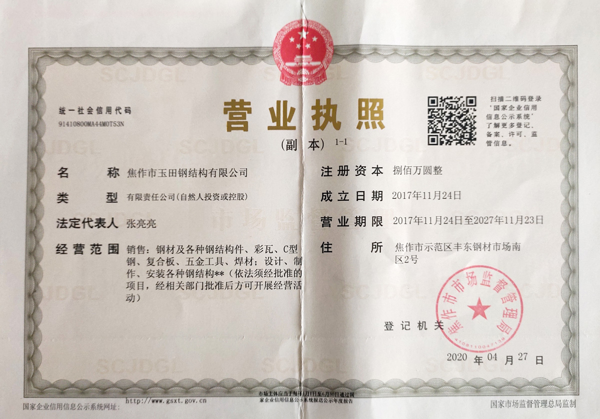 2020-2021 焦作市玉田鋼結(jié)構(gòu)有限公司